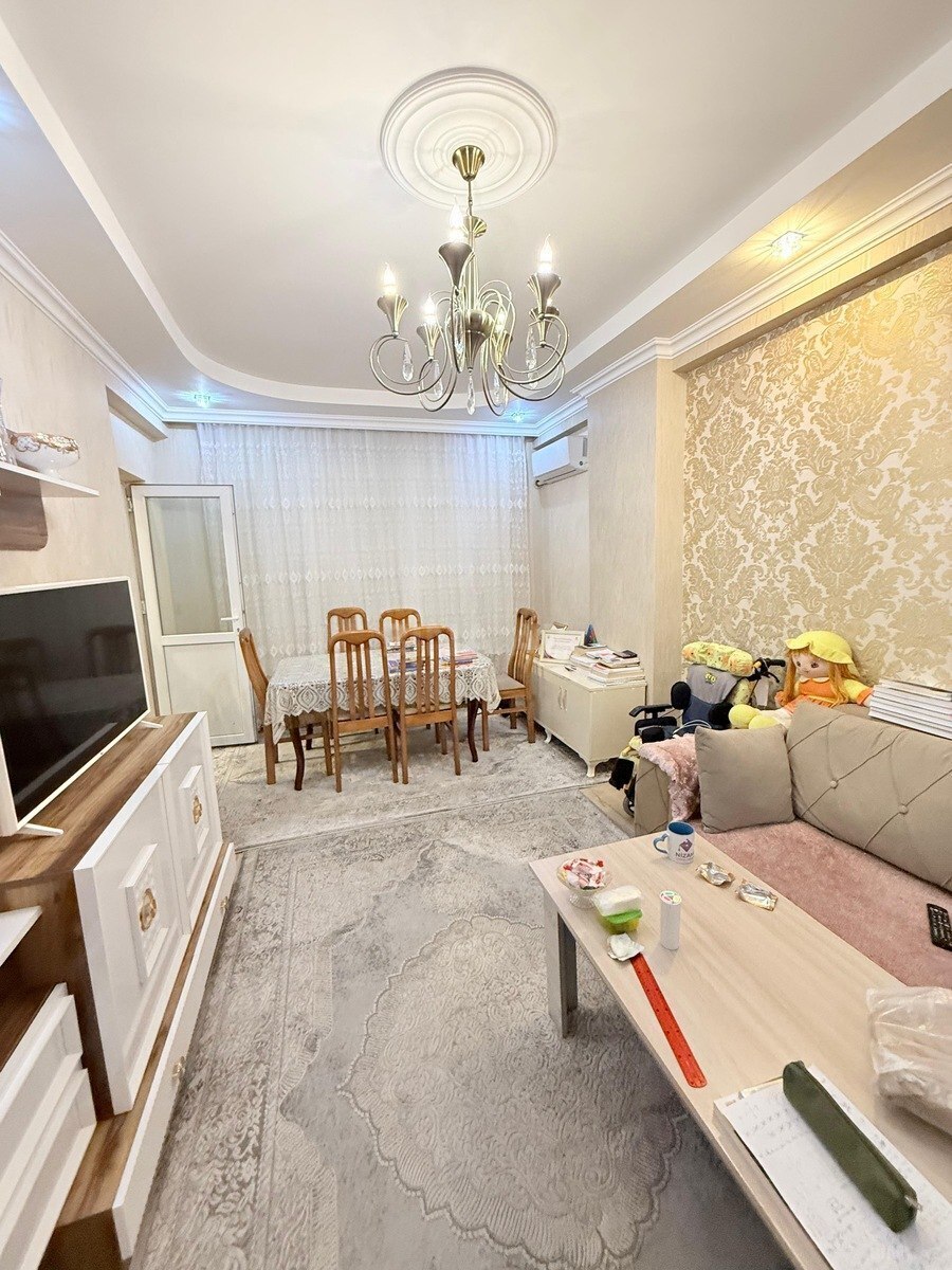 Evimiz (4 yataq) (1 qonağ) (1 böyük mətbəx) (1 qardirob) (1 hamam) (2 tualet) (kombi var) (kondisoner var) (böyük navesi var)