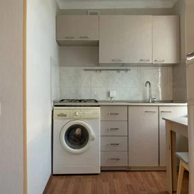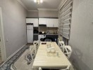 Mətbəx: Müasir ağ rəngli mətbəx mebeli, paltaryuyan maşın və quraşdırılmış soba ilə təmin olunub.