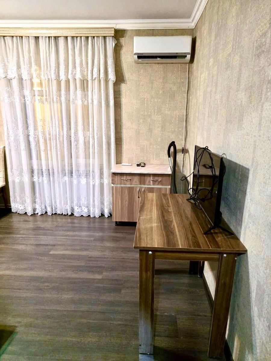 Şəhərin mərkəzində.İcəri şəhər metrosuna 5 dəqiqəlik məsafədə yerləşən 1 otaqlı ev uzunmüddətli kirayə verilir..Evde Kondisioner,soyuducu,paltaryuyan,TV mövcuddur.İsitme sistemi kombidir.