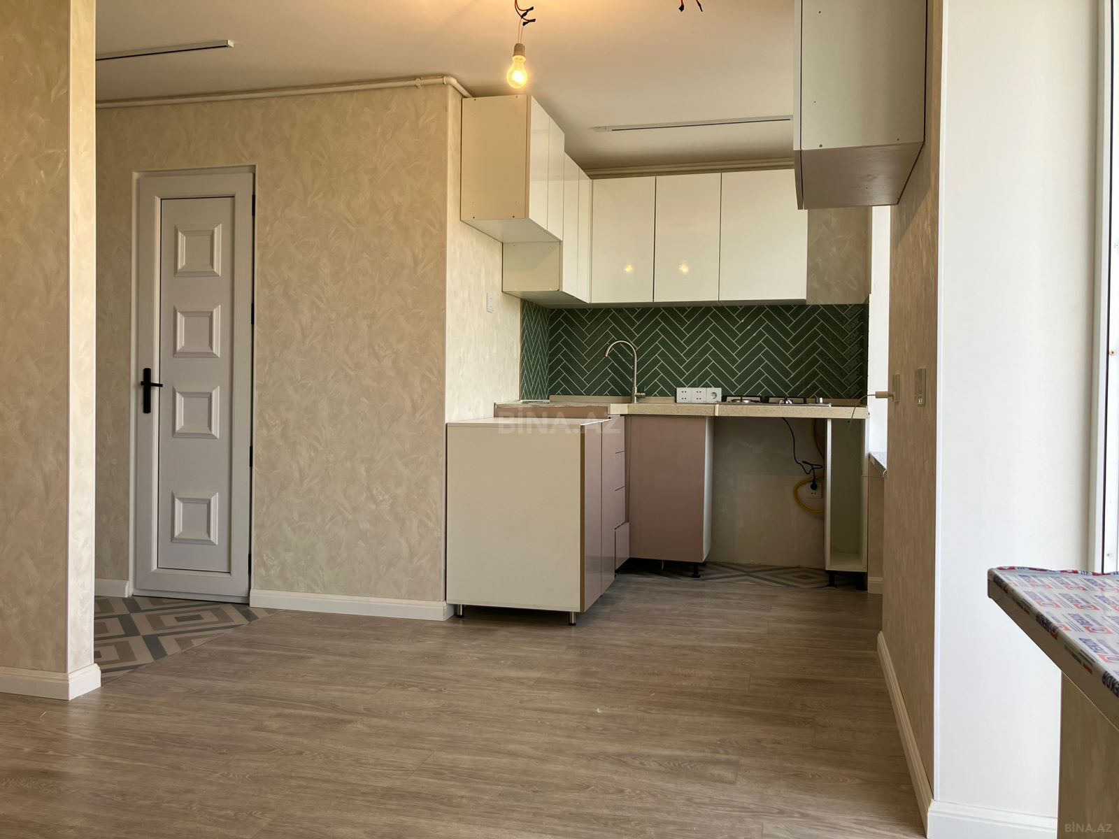 Mətbəx mebeli, şkaf, divan, Tv, jurnalni, ariston (80 L), qaz plitası və yeni pərdələr ilə təchiz olunub