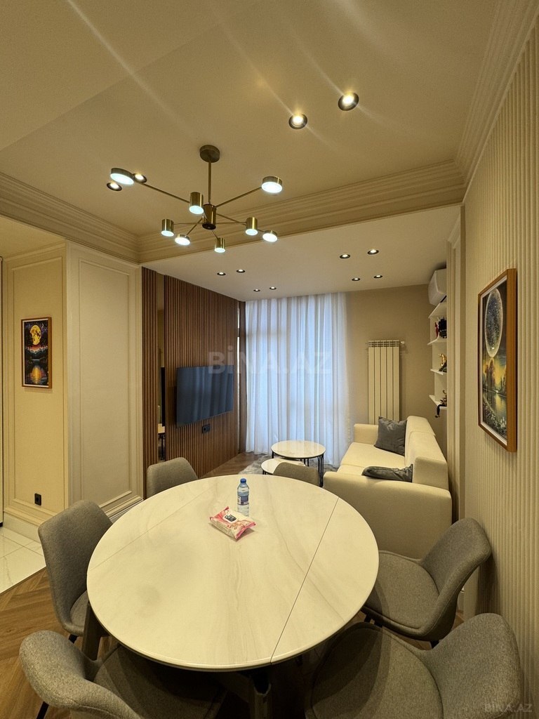 Mənzil 74 kvadrat metrdir, tam təmirli və bütün avadanlıqlarla təmin olunub (mebel, kondisioner, TV, internet və s.).