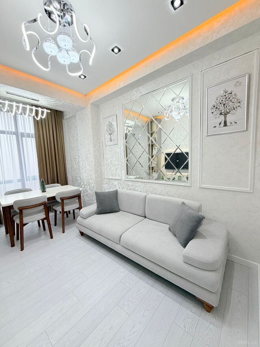 Mənzil müasir dizayn konsepti ilə hazırlanıb, işıqlı və funksional planlamaya malikdir. Yüksək keyfiyyətli materiallarla təmir olunub, bütün mebel və məişət texnikası premium səviyyədə seçilib. Mənzil tam hazır vəziyyətdədir və əlavə xərc tələb etmir.