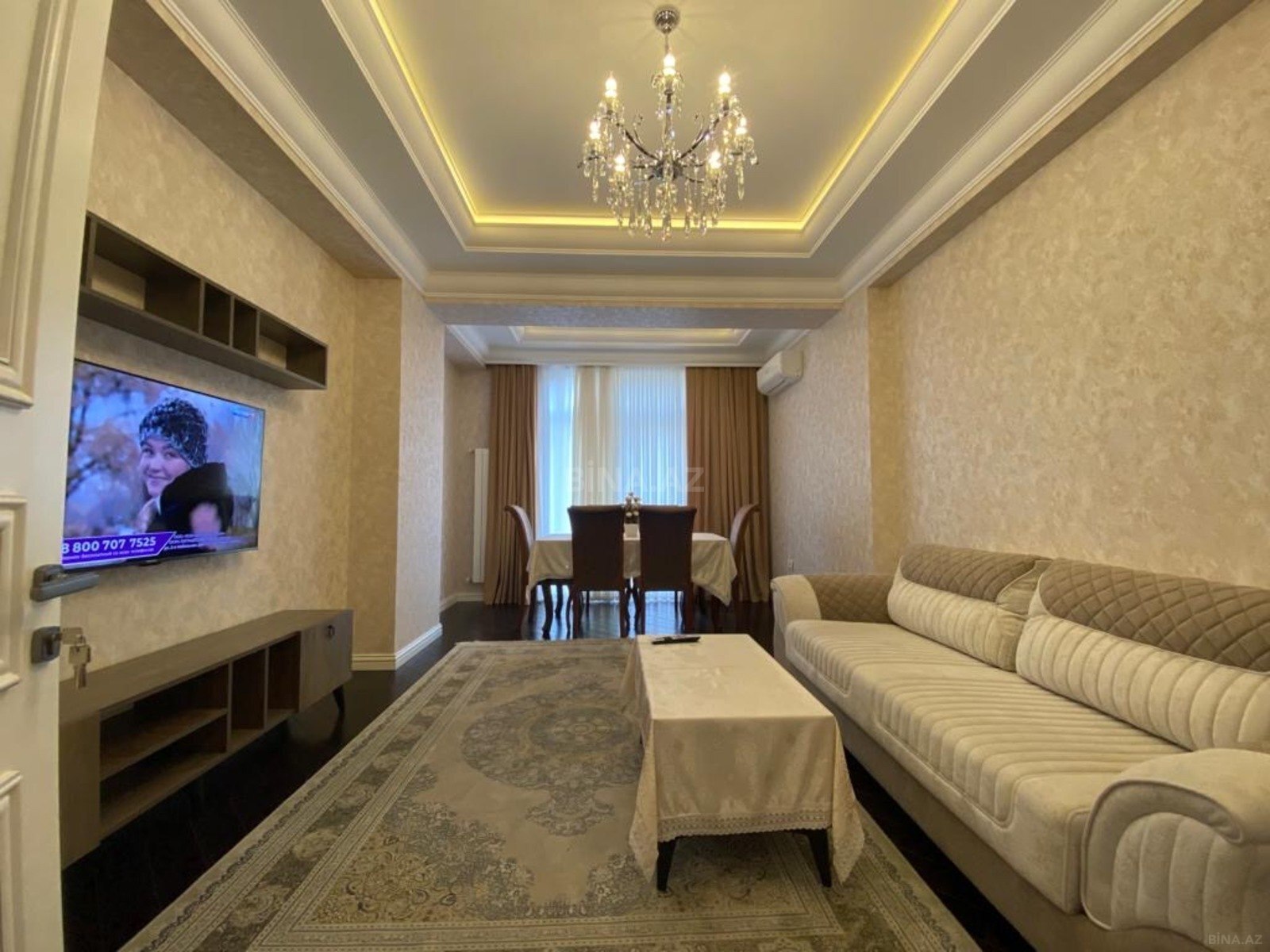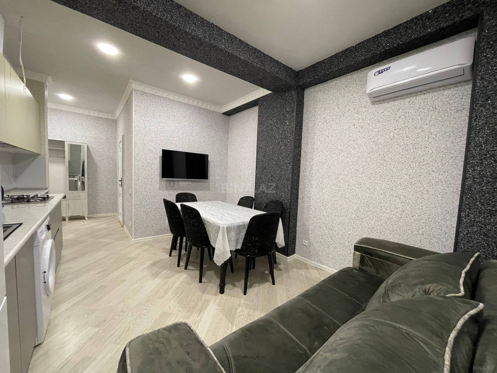 100 kv.m sahəsi olan bu mənzil zövqlə təmir olunub və tam əşyalı şəkildə təqdim olunur.
