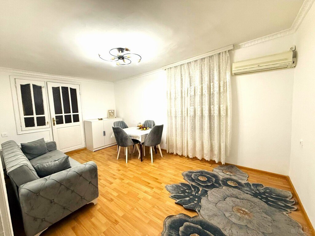bineqedi ray 6 mkr 30 sayli mektebin yaninda yerlesen 9 mertebeli binanin 1 ci mertebesinde yerlesen temirli ve tam esyali kupcali ev