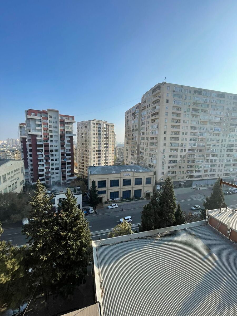 Mənzilin çox geniş eyvanından birbaşa şəhər panoraması, McDonald’s və Padişah restoranına açılan möhtəşəm görüntü — axşam çayı üçün əvəzsiz zövq ☕✨