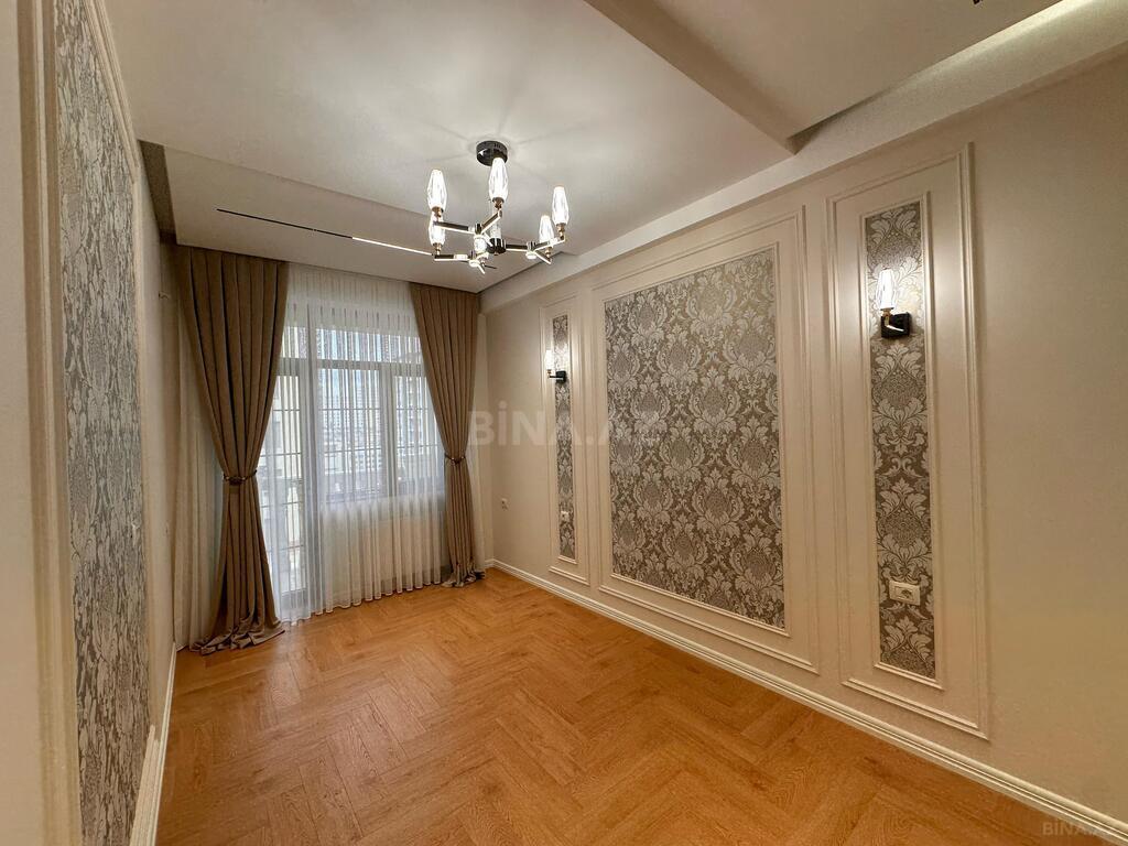 Mənzil işıqlı və genişdir, yüksək keyfiyyətli materiallarla təmir edilib. Binada sürətli lift, 24/7 mühafizə sistemi və yeraltı dayanacaq mövcuddur.