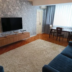 7 MKR, A. Kunanbayev kucesi, yeni tikili – APARTMAN tipli binada, umumi sahesi 130 kv m olan 3 otaqli menzil kiraye verilir. Mertebe 6/5, yaxsi temir, doseme parket, qurasdirilmis metbex mebeli, qaz, su, isiq daimidir, merkezi istilik sistemi. Binada lift var. Menzilde her bir serait yaradilib.