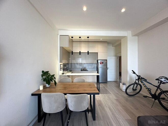 Yeni yaşayış binası və yeni təmir olunmuş evdir,təmirdən sonra yaşayış olmayıb.Evdə olan əşyalar və texnika avadanlığları hər biri yeni alınıb qoyulub.Otağlarda olan pəncərə və 2 balkon dəniz mənzərəlidir.Binanın önündə böyük park və avtodayanacağ mövcuddur.Fasiləsiz su,qaz,işığ mövcuddur.