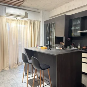In an elite residential complex 3 -rooms apartment for rent with amazing city view. The apartment is equipped with everything necessary for a comfortable stay. Heating, split air conditioning, washing machine, internet, etc. 24/7 security.