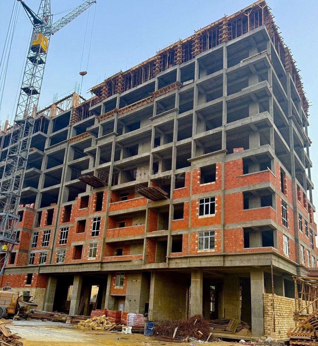 Bina yekunlasir artiq 11 ci mertebe tikilir qalir 4 mertebesi.