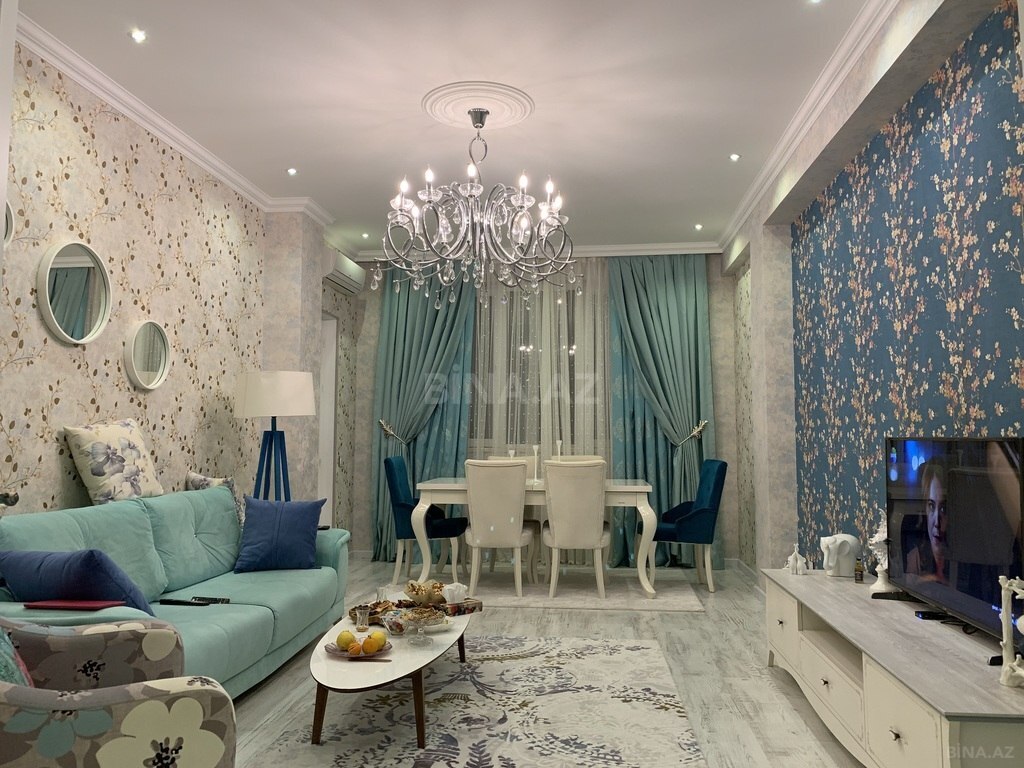 12 mərtəbəli binanın 7-ci mərtəbəsi, 70 kv, tam təmirli və əşyalı mənzil.