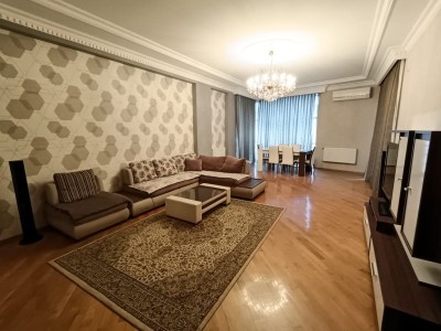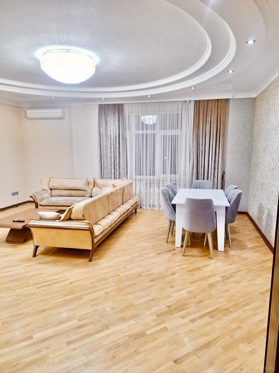 Сдается в аренду в новостройке 4- комнатная квартира по улице Рашида Бехбутова около Аквапарка. Общая площадь квартиры 150 м2, и расположена на 6/9. Отличный ремонт, 3 спальные комнаты, санузел 1 раздельный - джакузи, встроенная кухонная мебель со всеми удобствами и условиями, имеется стиральная и посудомоечная машина. В квартире очень тихо и спокойно. В здании имеется газ. Отопительная система кoмби. Здание охраняется 24 часа в сутки. Цена аренды 1500 манат в месяц. Квартира так же сдаётся посуточно 100 манат и выше. (What’s App)