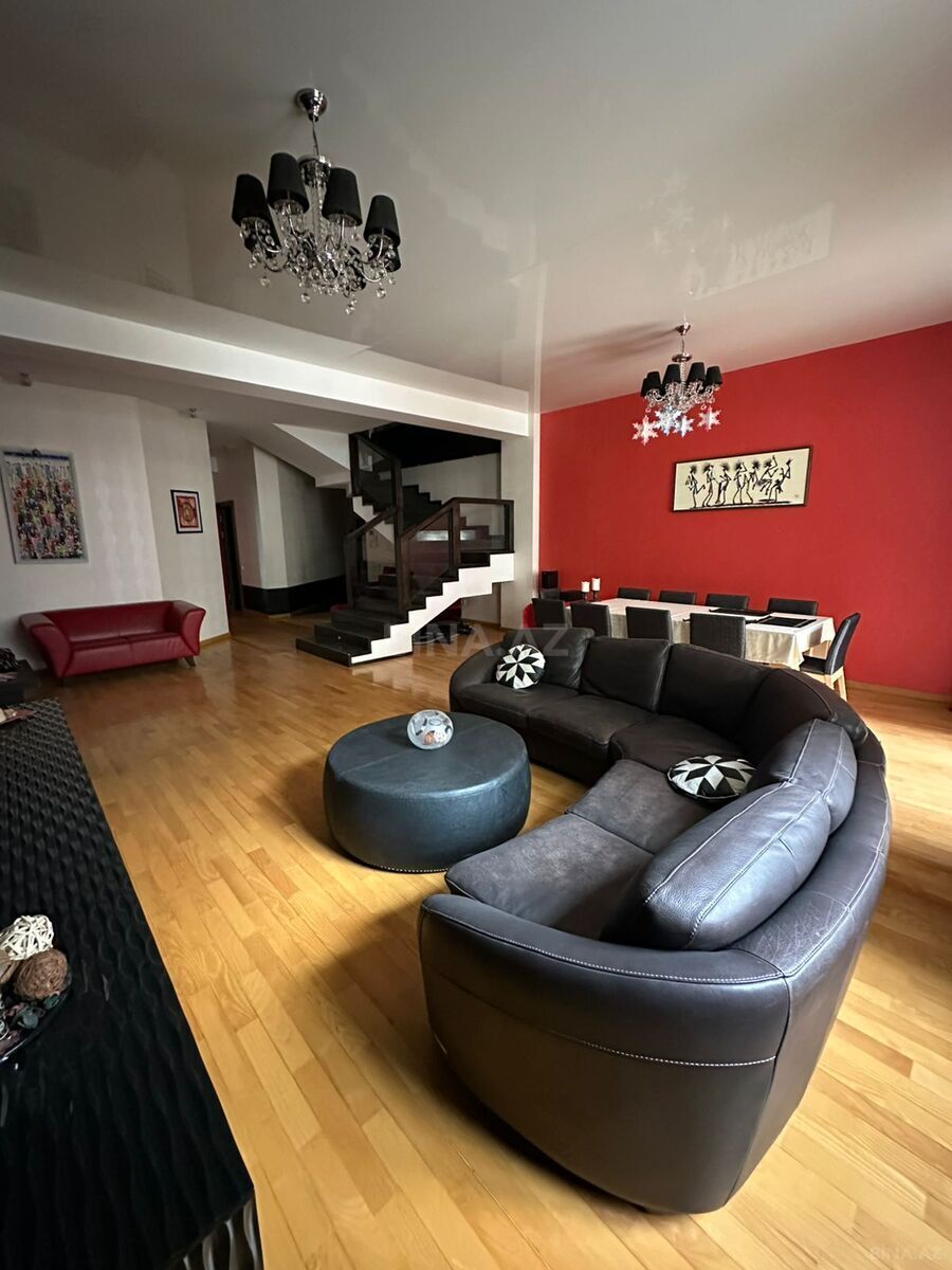 Gulustan building near 28 may.Duplex apartment located on 7,8floors.Apartment has 3bedrooms,4bathrooms,working room.260sq.m.Apartment fully furnished and fully equipped.