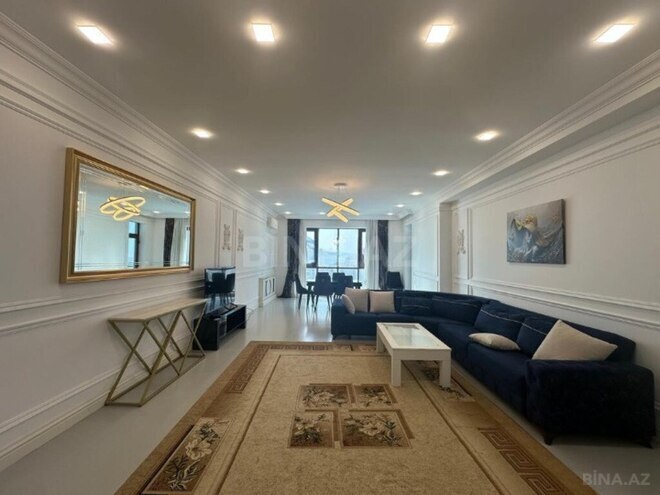 Yüksək keyfiyyətli əla təmir. Mərtəbə: 5/7. Ümümi sahəsi 165 m2., 3 açıq eyvanı, 2 s/q, duş kabina. Parket döşəmə, döşəmə qızdırıcısı, hündür tavan. KATV, internet-wifi. Quraşdırılmış mətbəx mebeli. İstilik sistemi “Kombi”. Mühafizə olunan həyəti, 1 sürətli lift, yerüstü və yeraltı avto dayanacaqlar, uşaq meydançası.