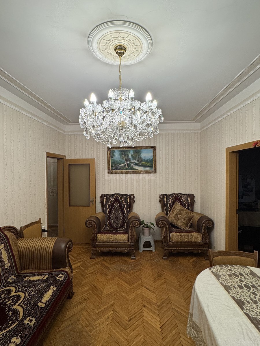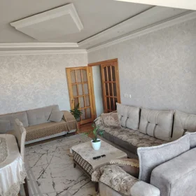 Nizami rayonu, Qara Qarayev pr., (Xalqlar dostluğu metro stansiyasının yanında) Köhnə tikili 9 mərtəbəli eksperimental layihəli binanın 3-cü mərtəbəsində, ümumi sahəsi 120 kv.m. olan Qanuni 5 otaqlı (4 otaqlıya düzəlmə), yeni təmirli, kupçalı, əşyalı mənzil satılır. Mənzilin Sənədi ÇIXARIŞ (KUPÇADIR). Mənzil orta blokda yerləşir, tam yelçəkəndir(skvaznoydur). Qaz, su və işıq daimidir. İstilik sistemi kombidir. Döşəmə parketdir. Eyvan Cambalkondur. İnfrastruktur cəhətdən ideal yerləşmə yeri var və ətrafda hər növ iaşə obyetkləri mövcuddur. ƏŞYALI SATILIR (Elektronika istisna olmaqla)