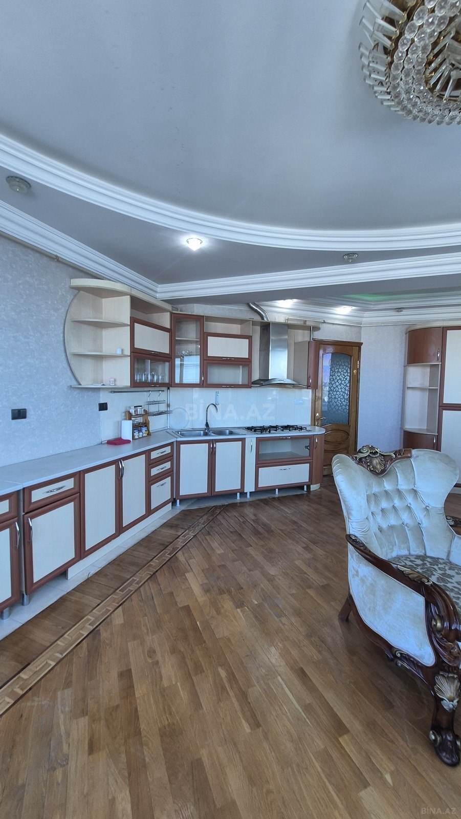 BİNƏQƏDİ RAYONU, 7-Cİ MİKRORAYON , AZADLIQ və DƏRNƏGUL METROSTANSİYALARI , SULEYMAN SANİNAXUNDOV KUÇƏSİ, 19 mərtəbəli yeni tikili binanın 10-cu mərtəbəsində yerləşən umumi sahəsi 150kv.m olan qanuni 3 otaqlıdan 4 otaqliya ideal duzəlmə əla təmirli mənzil butun əşyaları ilə birlikdə satılır. Mənzilin təmirində yuksək keyfiyyətli materiallardan istifadə olunub. Mənzilin parketi cavan şabalid agacından yıgılıb. Mənzilin mətbəxi, dəhlizi və sanitar qovşağı istipoldur. Binada işıq, qaz , su daimidir. İstilik sistemi kombidir. Mənzil ipotekaya yararlıdır. Bina infrastruktur cəhətdən çox əlverişli ərazidə yerləşir. Beləki, binanın ətrafında məktəb, bağça, parklar, klinikalar, idman zall ...