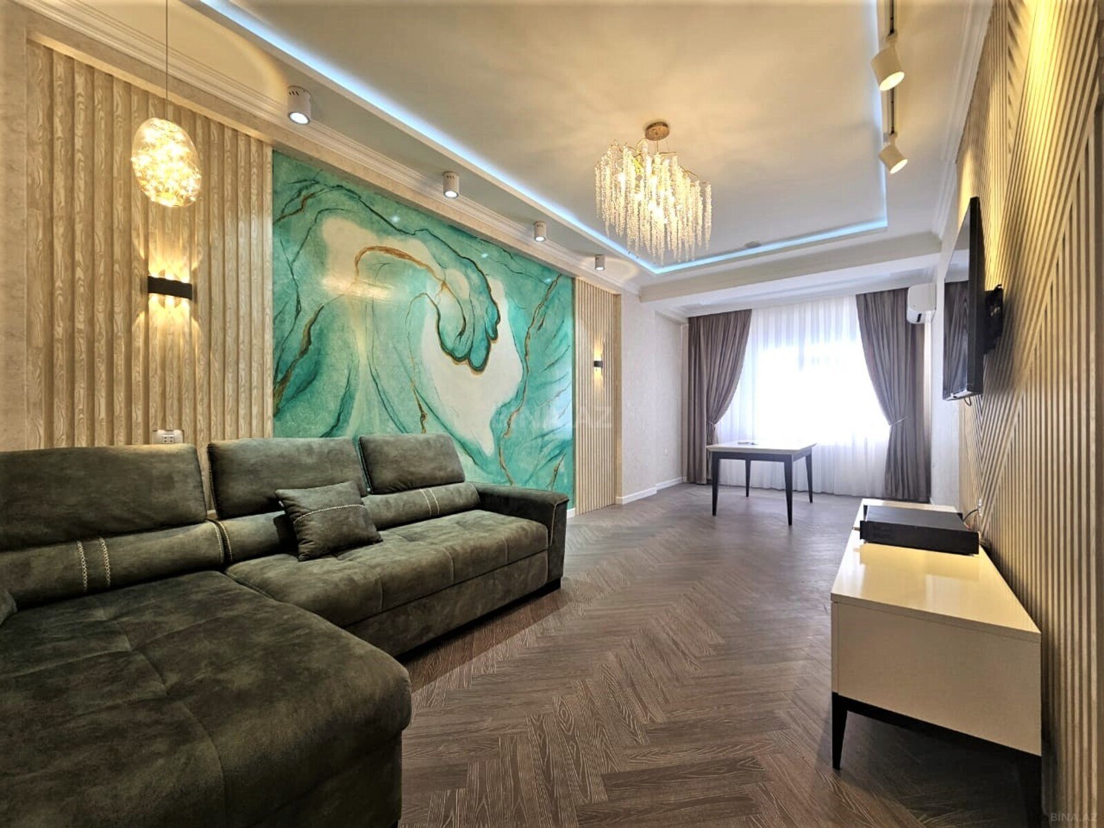 Umumi sahesi 115 kv , temirli menzil ,yer parket ,eshyali ,2 kondisoner , 1 bakon, qaz, su , ishiq daimi.
