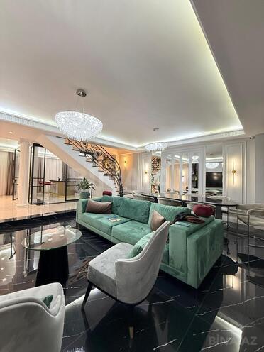 Səbail rayonu, Bayıl qəsəbəsində inşa edilən Yeni tikili binada 3 mərtəbə 6 otaq 320 kv/m Super təmirli ÇIXARIŞ’lı (kupça) TRİPLEX mənzil satılır. Mənzil 6 mərtəbəli binanın 4, 5 və 6-cı mərtəbəsini əhatə edir. Binanın 24 saat mühafizə xidməti və 24 saat müşahidə kamerası ilə nəzarət sistemi var. Evin şəxsi lifti var, bir başa mənzilə və mənzilin digər mərtəbələrinə qalxır. Mənzil Super təmirlidir, yelçəkəndir (skvaznoy), yüksək zövqlü dizaynerlər tərəfindən dizayn olunub və şəxsi yaşayış üçün nəzərdə tutulduğundan yüksək keyfiyyətli materiallardan istifadə olunmaqla təmir edilib (smistitellər GROHE firmasının istehsalı). Mənzil əşyalı satılır, şəkildəki əşyalar qiymətə d ...
