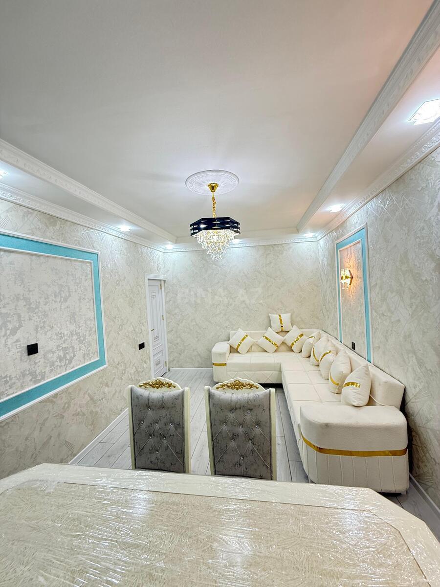- Heydər Əliyev Mərkəzin Yaxınlığında - Təhsil Nazirliyin Yanında - Əla təmir olunmuş 2 otaqlı tam təmirli mənzil – müasir dizayn və mebellərlə Planlaşdırma və ümumi xüsusiyyətlər: - Geniş dəhliz, qonaq otağı, yataq otağı, mətbəx və sanitar qovşağı - Dizayner işıqlandırma, spotlar və dekorativ çilçıraqlar - Divarlar dekorativ boya/tekstura, açıq rəng palitrası - Mərmər effektli döşəmə örtükləri, qonaq otağında açıq laminat Dəhliz: - Hündür güzgülü komod və şkaf sistemi - Alt hissədə LED işıqlandırmalı ayaqqabılıq bölməsi - Asma konsol və çekmece Qonaq otağı: - L formalı yumşaq künc divan - Aşağı TV stendi, divar montajlı televizor - İki dekorativ çilçıraq, tavan spotları və qara dekor pan ...