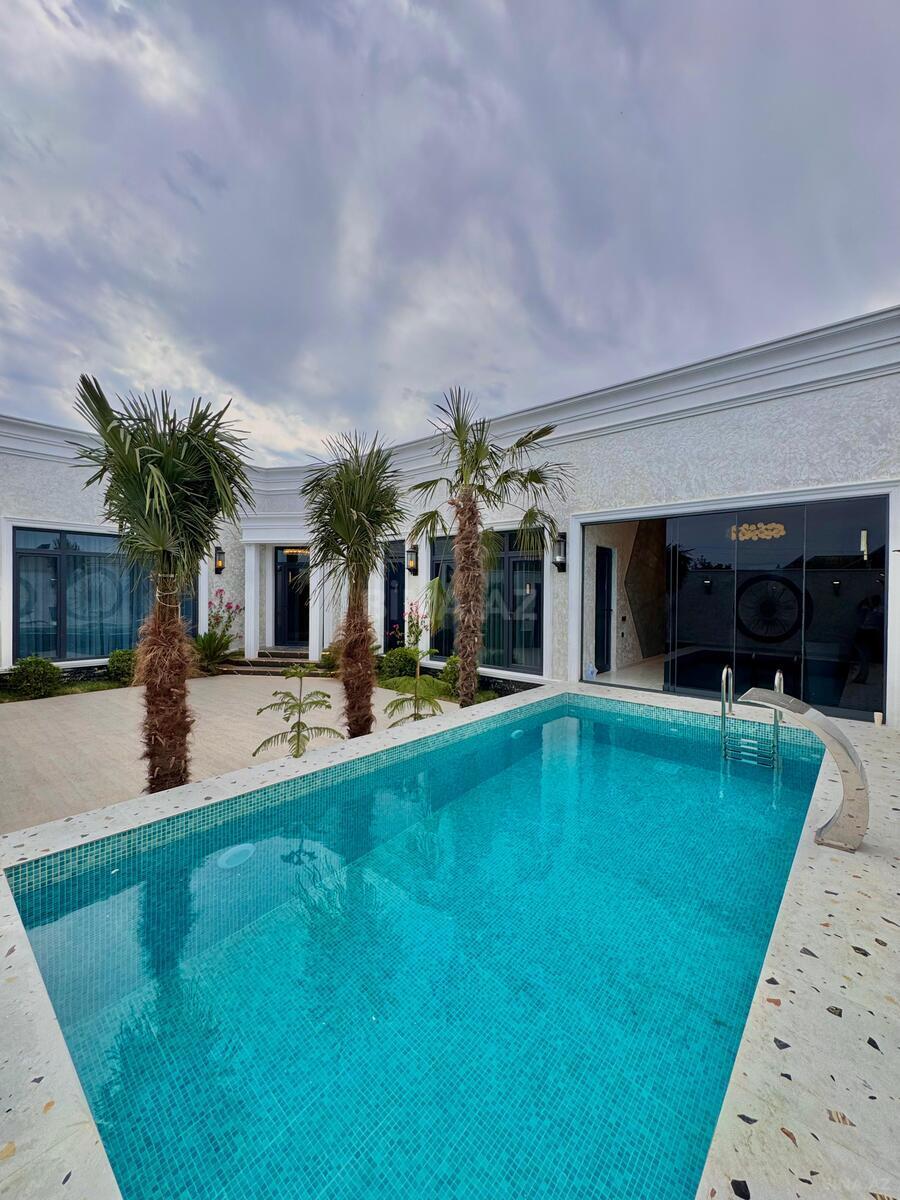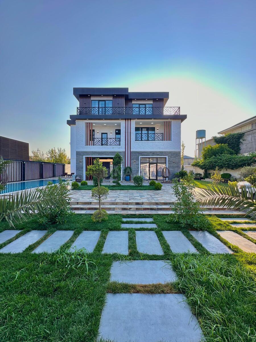 Sizə ekoloji təmiz Mərdəkan qəsəbəsində 15 Sotda 3 mərtəbə 1000 kv.m 8 otaqlı super bağ evini təklif edir. Bağ evi zal, mətbəx, qarderob, 7 yataq otağı, geniş eyvanlar, terras, holl və 4 sanuzeldən ibarətdir. Otaqlarda asılmış pərdə və lyüsturları, hündür tavanları, kondisioner, duş kabinalı sanuzeli, mebelli mətbəxi, quraşdırılmış işıqlandırma sistemi var. Ev yüksək zövq və keyfiyyətlə təmir olunub. Su, qaz, işıq daimidir. İstilik sistemi kombidir, isti döşəməsi var. Həyətində geniş filterli hovuzu, lejankalar, yelləncək, cambalkon besedka, stol-stul, yay-qış mətbəxi, manqalxana, söhbətgah, maşın saxlamaq üçün yer, pultla idarə olunan darvaza, yaşıllıq ərazisi, dekorativ ağacları və gülləri ...