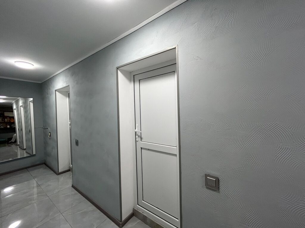 TƏLƏBƏ QİZIARA-GƏNCƏDƏ! Kirayə üçün multi-otaqlı yaşayış sahəsi - Daxili plan: geniş dəhliz, ayrıca otaqlar - Yataq otağı: iki ədəd 2-mərtəbəli çarpayı (ümumilikdə 4 yer), eyni üslubda taxta şkaf və komod, taxta fakturalı döşəmə, pərdəli böyük pəncərə - Dəhliz: iri ölçülü LED işıqlı güzgü, dekorativ naxışlı divar boyası, keramika döşəmə plitələri - Qapılar: ağ rəngdə, möhkəm karkaslı - İşıqlandırma: tavanda dairəvi LED işıqlar, otaqlarda bərabər və parlaq işıq - Elektrik: divar açarları və rozetkalar əlçatan yerdə - Üslub: müasir, neytral rəng palitrası (boz-bej), taxta teksturaları ilə harmoniyada Ailə, tələbə və ya kollektiv qalmaq üçün uyğun planlama; səliqəli yataq sistemi, saxlama meb ...