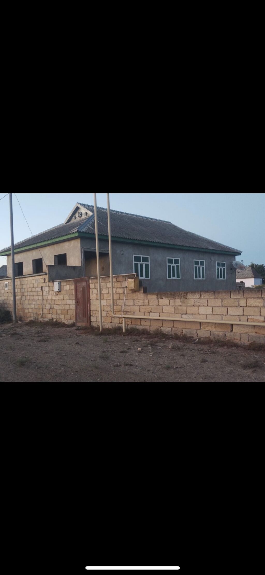 - Ön fasadda plastik qapı-pəncərələr, dam örtüyü şifer