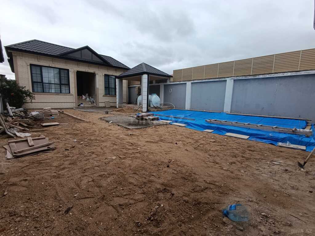 Çıxarış var həm torpağa həm evə. Buzovna.Əsas yoldan 700-800 m. Içəridə . Asfalt yolu var. 3.5 sotda 3 otaq -130kv.m. əla təmirlidir. Tamamlanma işi gedir .20 günə təhfil veriləcək, hovuz qarşı. Hovuz filtirlidir. Besedka.Qazon. Anbar. Jalüzilı darvazası.
