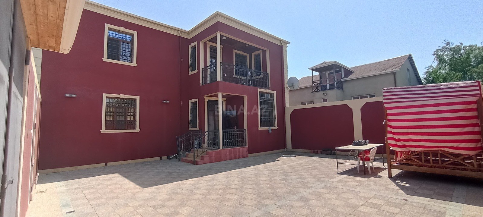 binede merkezde 2.2 sotds sexsi 3 otaqli ela temirli heyet evi satilir .ev qosa dasla tikilmisdi . ev bahali esyalarla birlikde satilir .bezi esyalari cixarilacaq .evin kombisi var kamunallar qaydasindadi