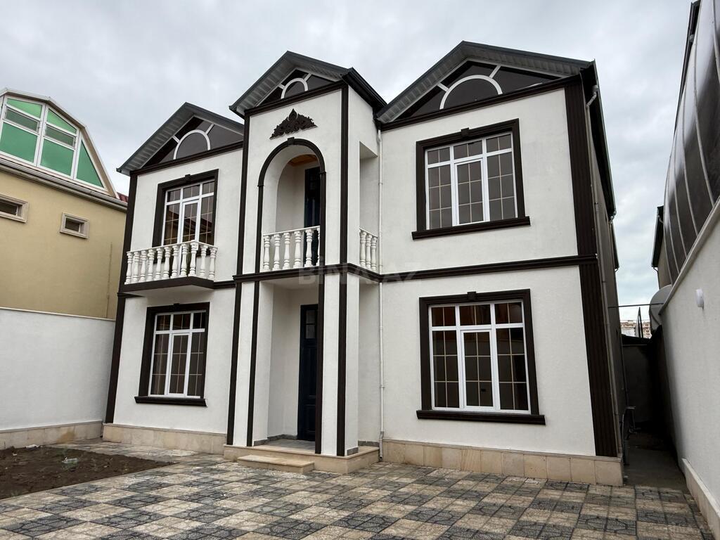 Satılır: həyət evi - İki mərtəbəli, fasadı aqlı rəngdə ev; metal giriş qapısı - Həyətə qədər hasarlanmış sahə, geniş giriş yolu - Otaqlarda iri pəncərələr, işıqlı tavan lampaları - Döşəmə: taxta fakturalı laminat - Divarlar: naxışlı, açıq tonlarda divar kağızı - Pəncərə altı mərmər sillər - Kommunikasiya üçün yeni xəttlər: mərkəzi qovşaqda mavi (soyuq su), sarı/ağ (qaz/istilik) və elektrik kabelləri səliqəli şəkildə çəkilib - Girişdə və otaqlarda priz/şalter yerləri hazır - Həyətdə tikinti materialları üçün sahə Əlavə məlumat üçün şəkillərə baxın.
