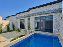 Продается новопостроенная дача-дом в пос. Мардакан, 3.5 сот, 140 кв.м, 1 зал, 3 спальни 2 с/у, отличный ремонт, светлые комнаты, теплый пол, отопит. система комби, бассейн с фильтром, терраса, резервуар для воды, вода, газ, свет, купчая. Дом предназначен для круглогодичного проживания, дорога асфальтированна, солидные соседи