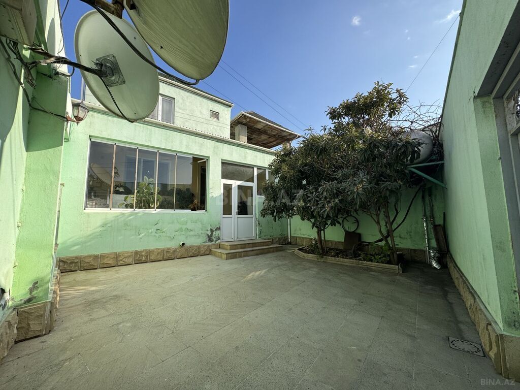 Şiferi vurulmayıb,Yarım tikili evdi,amma hər iki kəmeri töklüb,həm aşağı həm yuxarı,hündür zaboru çəklib,zaborun altıda karkaz,betondu,həyətdədə,hamam və kuxna hörülüb,tebiki yuxardada,həm kuxna,hamam-ayaqyolu və içinin kanazasiyasi çəklib,içinə beton tökülüb,üsdünədə beton tökülüb hamamın və 12 m uzunu 2 m enində kalidoru var,piləkəni və həyəti var.