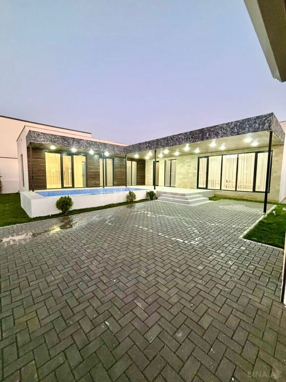 Buzovna qəsəbəsində 5.8 sot torpaq ərazisində yerləşən sahəsi 171.4 m2 olan 5 otaqlı bağ evi satılır. Bağ evinin pultla idarə olunan darvazası,1 maşınlıq qarajı,həyətində 2 otaqlı mühafizəçi evi,1 sanitar qovşağı,xüsusi düzəldimiş su quyusu,ehtiyat su çəni,söhbətgah və manqalxanası,kiçik şəlalə tipli hovuzu,yellənçəyi,yaşıllıq zonası və matorxanası vardır. Evin 1-ci mərtəbəsində mətbəx,qonaq otağı,1 yataq otağı,ümumi sanitar qovşağı,2-ci mərtəbədə 3 yataq otağı,1 ümumi sanitar qovşağı vardır.Əlavə olaraq otaqlarda yük bölümləri və 1 ayrıca yük otağı vardır. Evin tikintisində keyfiyyətli materiallardan istifadə olunmuşdur.Bağ evi 2 daşla tikilib,kürsülüdür. Bağ evi bütün mebelləri ilə bir ...