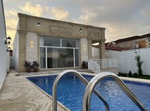 Tam Əşyalı!! ekoloji təmiz Mərdəkan qəsəbəsində Bravo market yaxınlığında, əsas yoldan 100 metr məsafədə 5 Sotda 1 mərtəbə 200 kv.m 4 otaqlı bağ evi. Bağ evi zal, mətbəx, 3 yataq otağı, qarderob, geniş eyvan, geniş holl və 3 sanuzeldən ibarətdir. Otaqlarda asılmış pərdə və lyüsturları, hündür tavanları, tv, internet, mebelli mətbəxi, duş kabinalı sanuzelləri, quraşdırılmış işıqlandırma sistemi var. Ev yüksək zövq və keyfiyyətlə təmir olunub. Su, qaz, işıq daimidir. İstilik sistemi kombidir, isti döşəməsi var. Həyətində geniş filterli daşma hovuzu,besedka- yay-qış mətbəxi, stol-stul, terras, manqalxana, söhbətgah, qapalı parking ərazisi, pultla idarə olunan darvaza, yaşıllıq ərazisi, dekorati ...