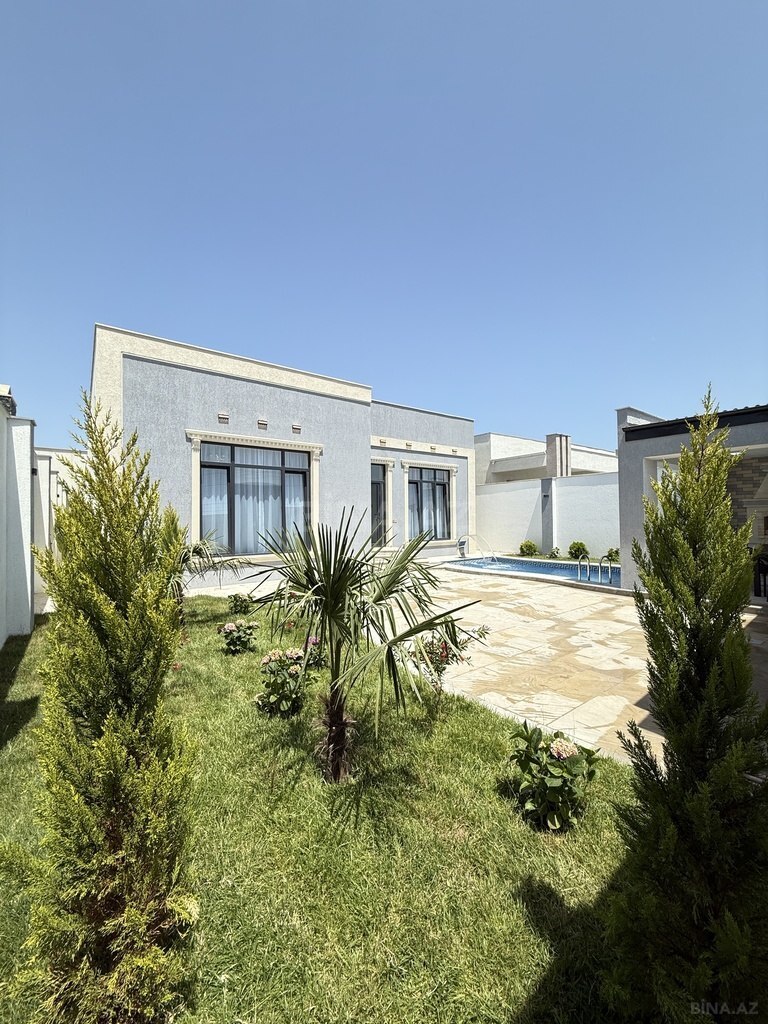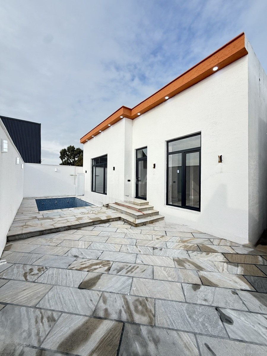 Merdekanda 8 sotda modern ve zovgle dizayn olunmus bag evi satilir! Khalcha restoranina cox yaxin, yeni formalaşan sakin ve prestijli sherciyde yerleshen bu villa ferqli memarligi ile diqqet ceker. Ev haqqında Umumi sahesi: 260 m² 4 yataq otagi (2 master bedroom) 1 genis zal Ayrica metbex 2 yataq otagindan heyete gozlenilesi menzere Heyet infrastrukturu 8 sot torpaq Boyuk hovuz Genis parking zona Yay besedkasi Teras sahesi Yay + qish metbexi (ayrica tikili) Mukemmel yerlesme, modern dizayn, funksional planlama ve yasamaq ucun tam ideal bir muhit. Hem seherden uzaq olmayan, hem de sakit yasam isteyenler ucun tapilmayan variant!