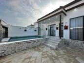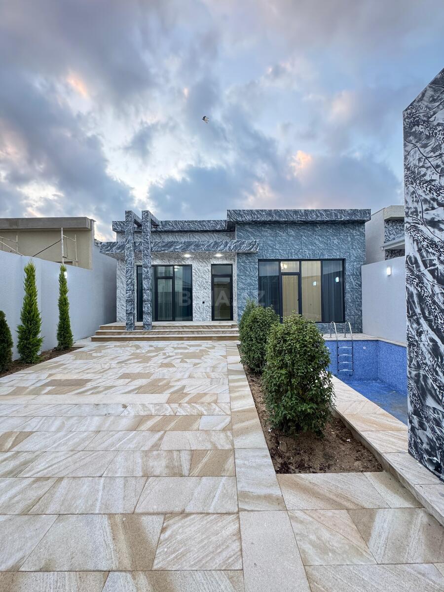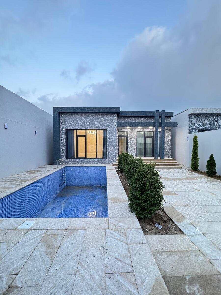 Bağ evinin 1-ci mərtəbəsində 1 zal, 1 yataq otağı, holl, mətbəxt, 1 sanuzeli, 2-ci mərtəbəsində isə 4 yataq otağı, 3 sanuzeli, 3 eyvanı mővcuddur. Həyətində filtirli baseyn, bisetka, manqal, 5 maşınlı açıq qaraj, axran evi, qazanxana, sanuzel, dekorativ ağaclar, işıqlandırma sistemi, 10 tonluq su çəni, boller, distansiyonnu qapısı var. Qazı, suyu, işığı daimidir.