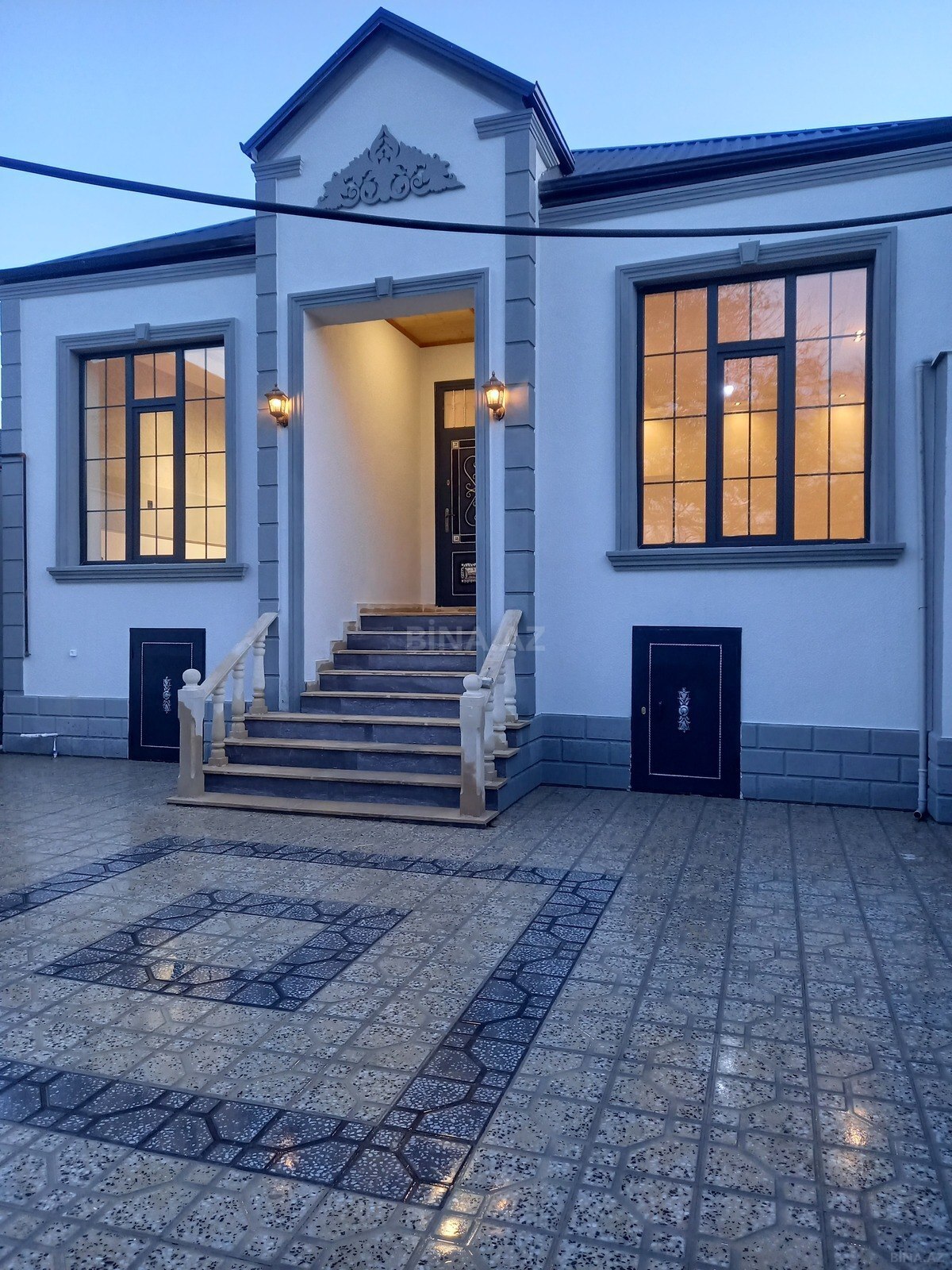 Satılır: həyət evi - Plan: geniş zal, ayrıca yataq otaqları, mətbəx zonası, yardımçı/təmirlik otaq. - Ümumi xüsusiyyətlər: hündür tavan, taxta iç qapılar, tavan bəzəkləri (lüstürlü rozetkalar), plastik pəncərələr, taxta döşəmə örtüyü. - Zal: iri pəncərələr, işıqlı məkan; yemək masası, stullar, televizor üçün yer; xalça və yumşaq mebel sığan genişlik. - Yataq otağı: çarpayılar üçün kifayət qədər sahə; 4 qapılı güzgülü şkaf; əlavə saxlama imkanı. - Yardımçı otaq: daş divarlı, təmirsiz vəziyyətdə saxlanma/emalatxana kimi istifadə oluna bilər. - İnfrastruktur: otaqlarda şüşəbənd pəncərələr, elektrik işıqlandırma nöqtələri, divar saatı və pəncərə pərdələri. - Həyət evi ailə yaşayışı üçün rahat p ...