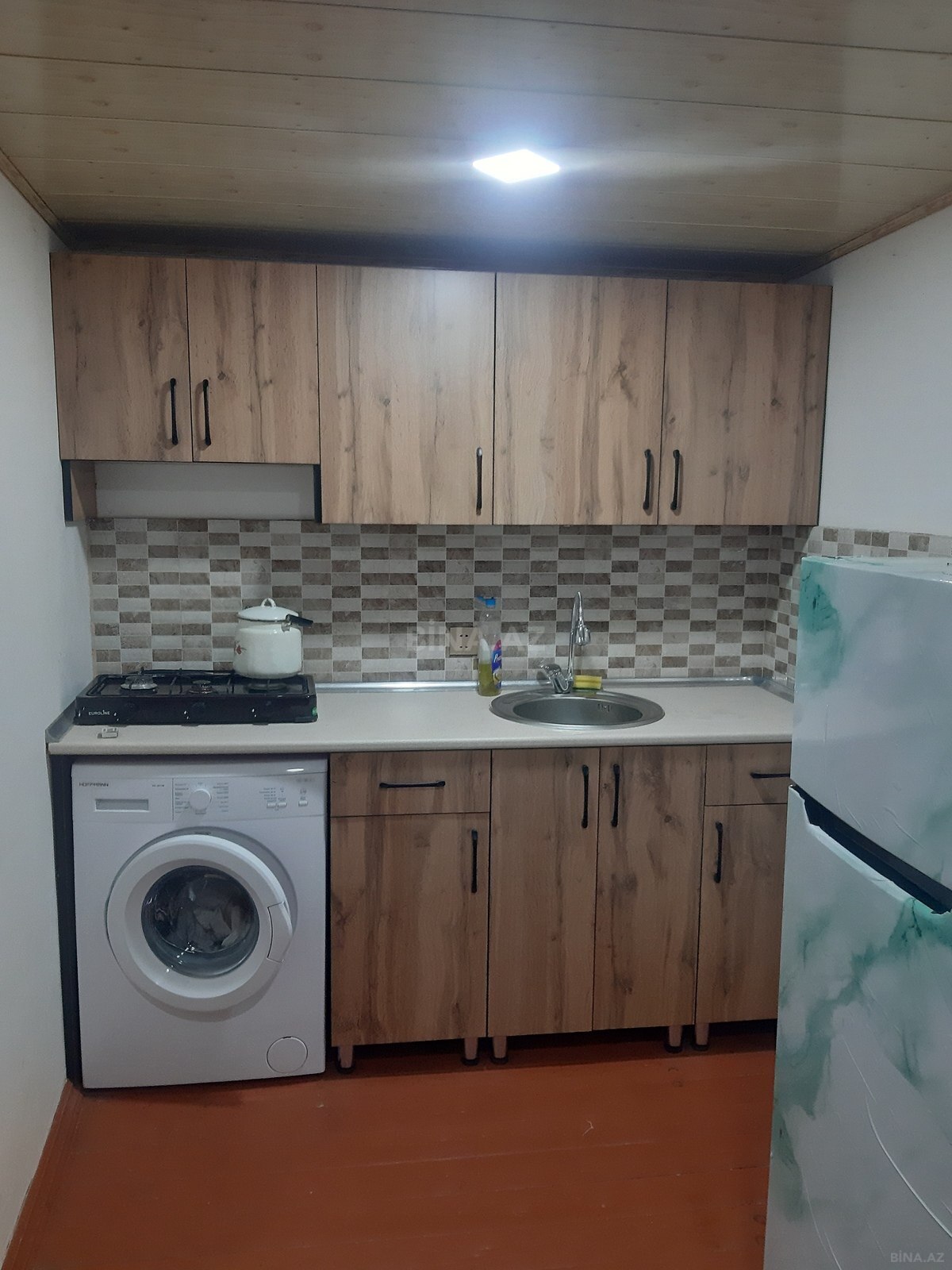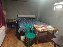 Satılır/icarə üçün tam yaşayışlı həyət evi - Plan: 2 otaqlı (yataq otağı + geniş mətbəx-studio/zal), sanitar qovşağı evin içində. - Həyət: Kiçik, tamet döşəməli, girişdə pilləkən və metal məhəccər, peyk antenası quraşdırılıb. - Mətbəx: Uzun modul mətbəx mebeli, qaz plitəsi, aspirator, soyuducu, mikrodalğalı soba, qabyuyan üçün yerli elektrik çıxışları, paltaryuyan maşın; yemək masası və stullarla birlikdə geniş iş sahəsi. Tavan spot işıq, divarlar dekorativ örtüklə. - Yataq otağı: Pəncərəli, radiatorla isitmə, pərdə və tül, iri çarpayı, şkaf üçün yer; taxta döşəmə. - S/Q: Daxili hamam-tualet, duş sistemi, unitaz, kiçik pəncərə ilə havalandırma; divar və döşəmə tam kafel/metlax. - Döşəmələr: ...