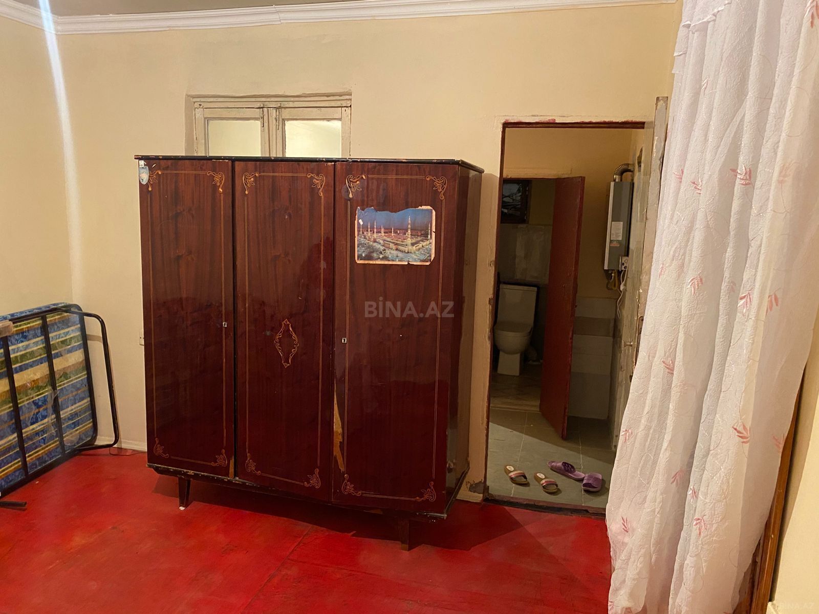 1 otaqlı həyət evi 1ci mertene - Girişdə pilləkənli kiçik eyvan və dəmir giriş qapısı - Ayrı hasarlanmış kiçik həyət/baxça sahəsi, paltar asmaq üçün dirəklər - Pəncərələr taxta çərçivəli - Daxildə geniş otaq: iki nəfərlik çarpayı, divan, kiçik masa - İşıqlandırma tavandan lampalı - Döşəmə rənglənmiş taxta - Su-kanalizasiya çıxışları çəkilmiş, dam örtüyü şifer - Həyət qapısı və hasar profnastil/dəmirdəndir Sadə planlı, kompakt məkan axtaranlar üçün uyğundur: yaşayış, kirayəlik otaq, yaxindan 4 avtobus isleyir 12 nomre demir yol stansiya sumqayit karvan bazar 14 mertebe 2 nomre katej dejurnu travmatalogiya ximstroy pasyolka 4 nomre metallurg mal bazari