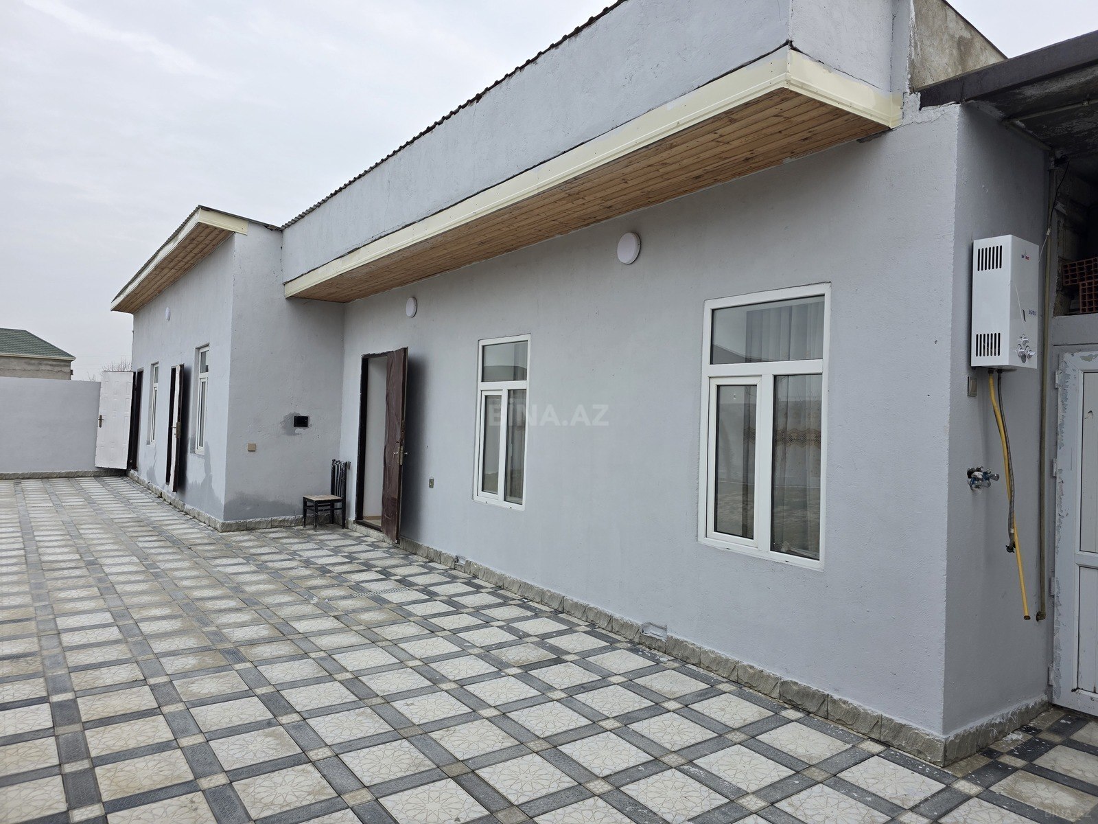 Masazırda 3 otaqlı həyət evi, 4 sotun içində. Su, işıq, qaz və kanalizasiya xətti var. Mebellərdən əsas əşyalar var. Maşın saxlamaq üçün açıq dayanacaq.