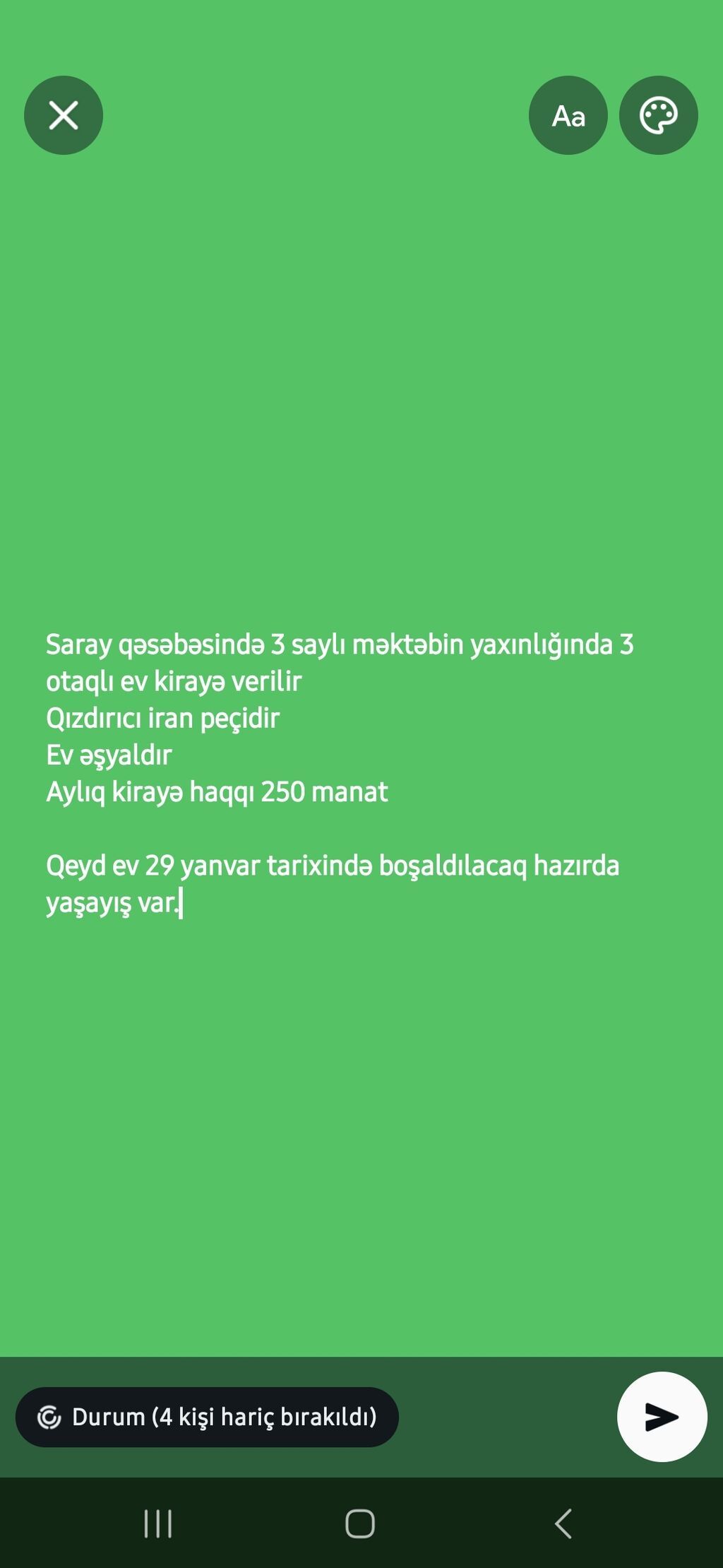 Oz evimdi 2 nefer qala biler 2 nefer qalsa 230 manat . 1 nefer qalsa 200 manat kamunal pulsuz. xaladenik paltaryuyan her seraiti var qaz su isiq wifi kamunal pulsuz ev sahibi terefden odenilecek. . Vatcapa yazin . Bakixanov kohne mekkeme ile uz be uz mocuze markete yaxin. Bakixanov Sabuncu r. Bakixanov qesebesi