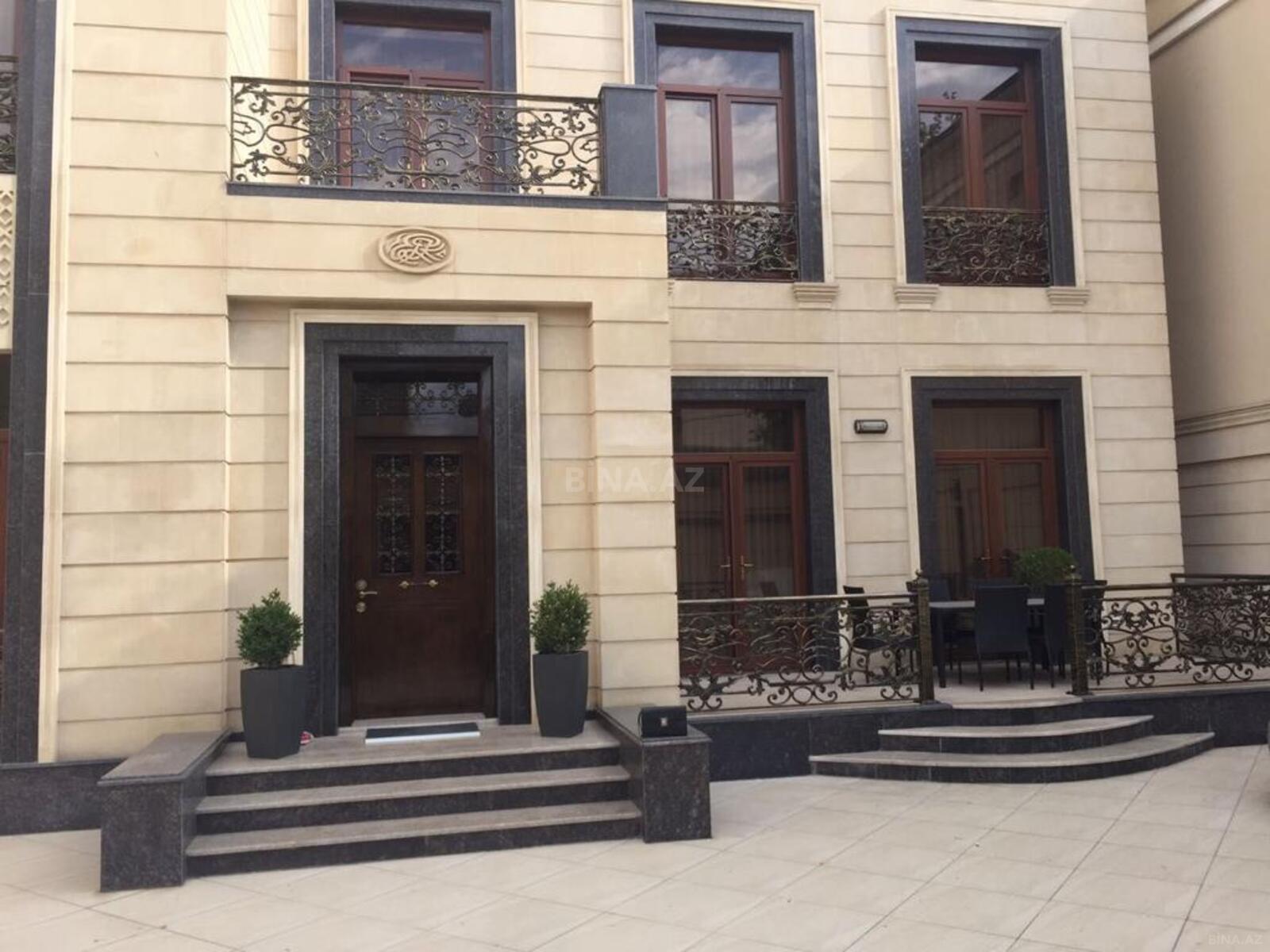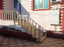 - Fasadda dəmir barmaqlıqlı pəncərə, dekorativ giriş qapısı, pilləkən və peyk antenası.
