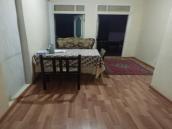 İcarəyə verilir: Mebel və məişət texnikası ilə təmin olunmuş həyət evi - Geniş işıqlı zal: televizor divara quraşdırılıb, 6 nəfərlik yemək masası və stullar, divan-kreslo dəsti, pərdə və dekorlar. - Mətbəx: qaz plitəsi, aspirator, qab‑qacaq şkafları, ikili çanaq, elektrik çaydanı, paltar/qabyuyan üçün yer, geniş iş səthi. - Döşəmələr taxta, tavanlarda işıqlandırma sistemi. - Pəncərələrdə pərdə və jalüzlər. - Giriş hissəsi məhəccərli hasarla qorunur. - İstilik sistemi radiatorlarla (şəkildə görünür). - Su və qaz xətləri, elektrik naqilləri çəkilib. Ailəvi yaşayış üçün uyğun, rahat planlı, lazım olan əsas avadanlıq və mebellə təchiz olunmuşdır.