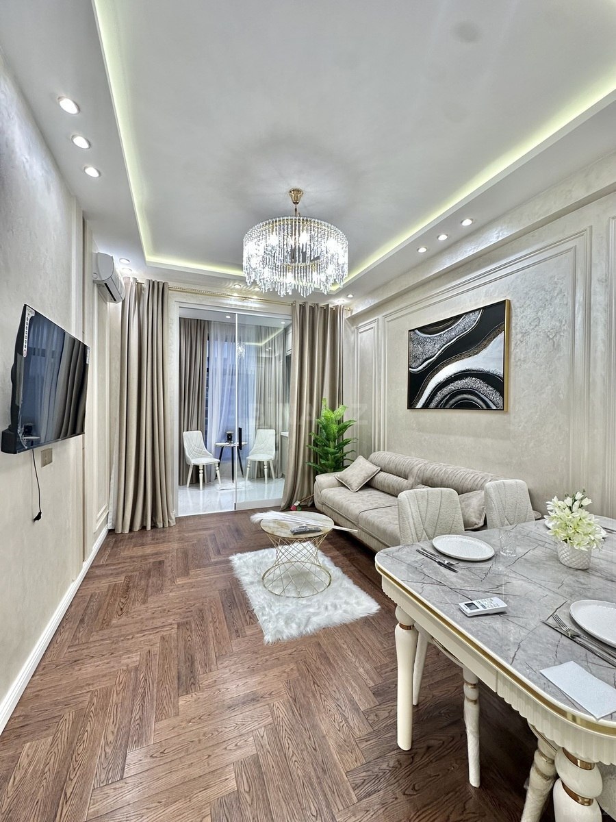 Smart TV, paltaryuyan, soyuducu və başqa lazım olan əşyalar ilə təmin olunub.