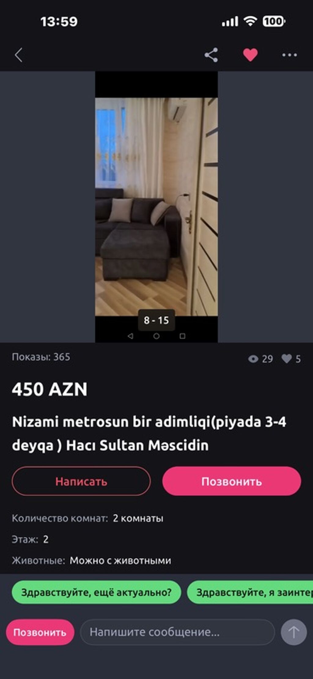 Xalqlarda metroya yaxın məsafədə yerləşən mənzillə xanım otaq yoldaşı axtarılır