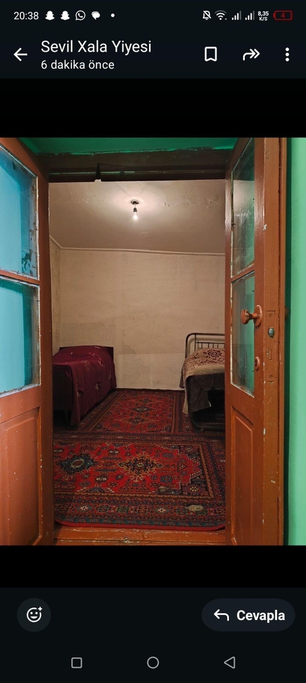 Zigda yerlesir ev zig mescidinin yaninda Kirayə verilir – sadə, mebel və xalçalarla təchiz olunmuş 1otaqlı yaşayış sahəsi. Xüsusiyyətlər: - Girişdən yataq otağına açılan taxta qapı və ikiqat pəncərə. - Yataq otağında 2 ayrı çarpayı (dəmir karkaslı və taxta), yorğan-döşək, asma tavan lampası. - Döşəmələrdə klassik naxışlı xalçalar. - Ayrı kiçik otaq/zal: parlaq yaşıl divarlar, taxta döşəmə üstündə xalça, üzlüklü kiçik masa, bəzək qabları olan örtüklü konsol. - Divarda kiçik niş/şkaf və su borusu çıxışı olan guşə. - Taxta döşəmə, pərdəli niş və sadə işıqlandırma. Sadə və rahat yaşayış üçün lazımi əsas mebel və xalça örtükləri ilə.