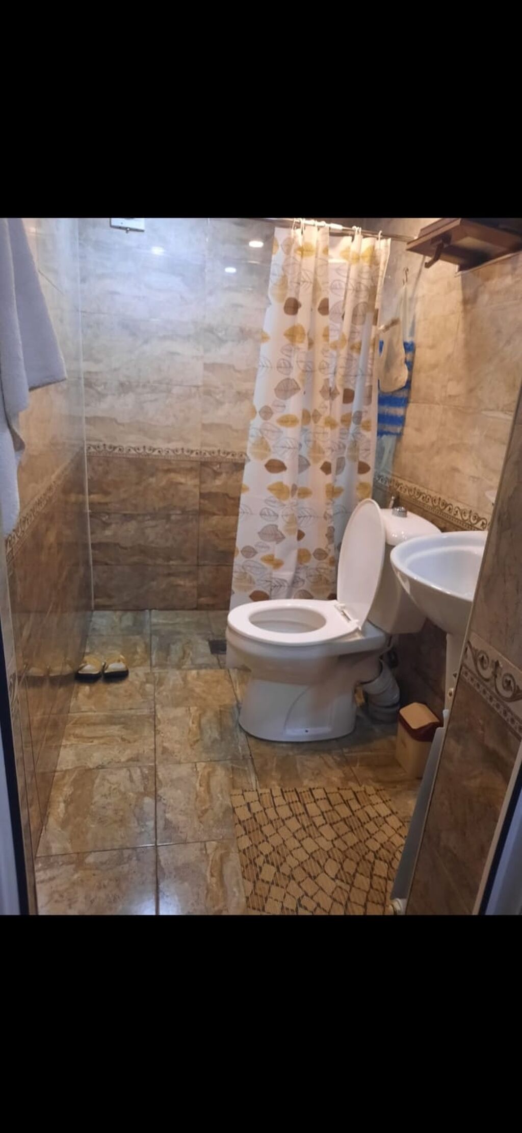 Mebel və texnika ilə təmin olunmuş mənzil təqdim olunur. - Otaqlar: rahat qonaq otağı (divan, 4 nəfərlik yemək masası və stullarla), ayrıca uşaq/yataq otağı (iki mərtəbəli çarpayı, kitab rəfi, iş stulu). - Sanitar qovşaq: tam sanitar qovşaq, duş üçün ayrıca zona, pərdə, qabyuyan lavabosu və unitaz. Divar və döşəmələr keramika plitə ilə. - Daxili giriş: işıqlı dəhliz, PVC giriş qapıları və pəncərə, asılqan və ayaqqabı zonası. - İstilik: radiatorlar mövcuddur. - Döşəmə: otaqlarda laminat, sanitar qovşaqda plitə. - Əlavələr: pərdələr, xalça, rəflər, dekorativ elementlər. Ailə üçün funksional planlaşdırma, praktik saxlama yerləri və rahat yaşayış mühiti.