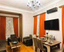 Сдается в аренду квартира в центре Баку, 103 м², 2 комнаты, кухня студия, полностью меблирована и оборудована (полная электрификация) , 9-й этаж. Одноблочный дом с бесплатной парковкой во дворе и круглосуточной охраной. Расположена напротив центрального парка. В мин. от ст. метро Низами. Цена 1265 AZN (мес.), 80 AZN (сут). Адрес: Балабаба Меджидов 22 (Balababa Məcidov 22).
