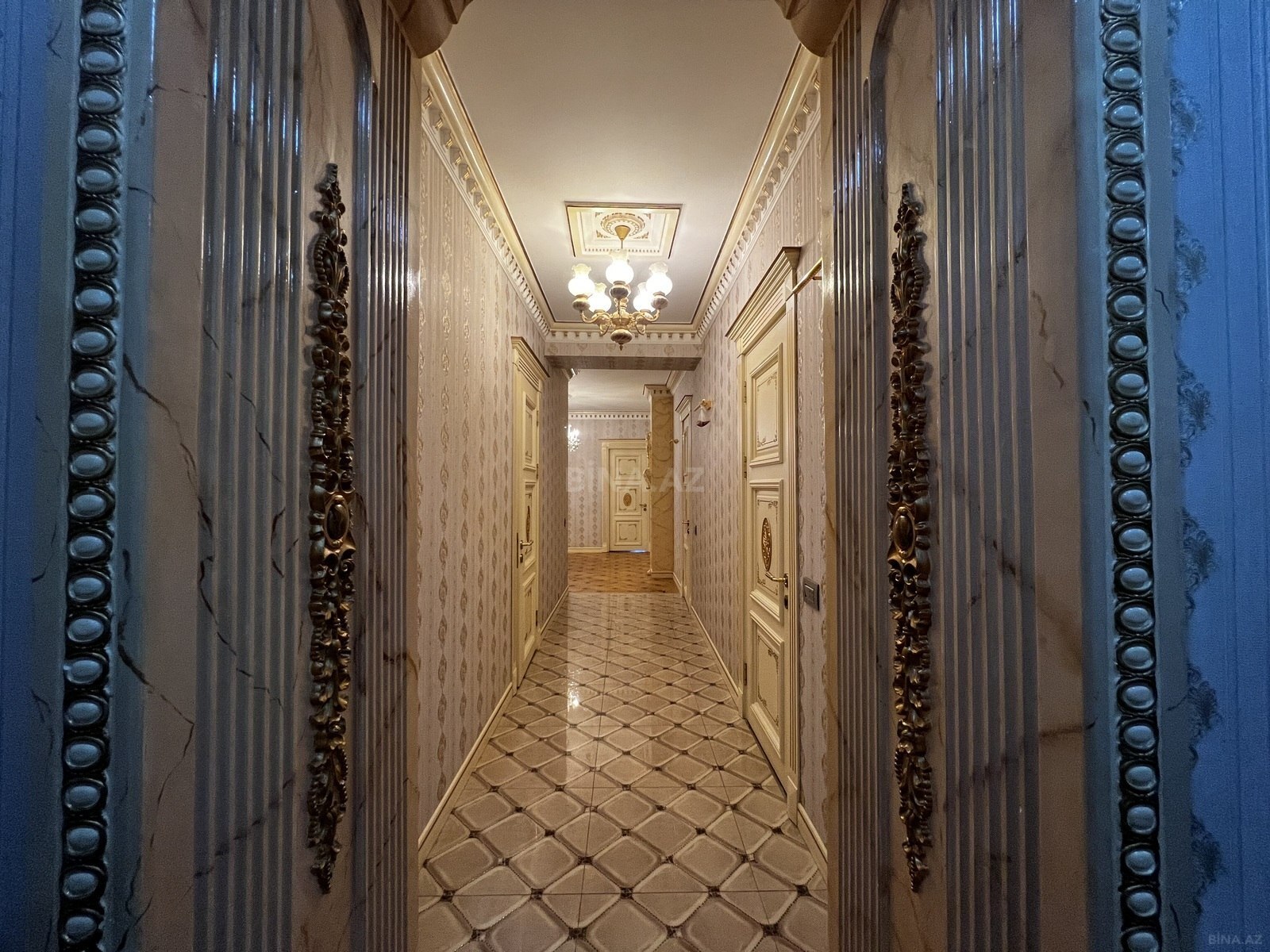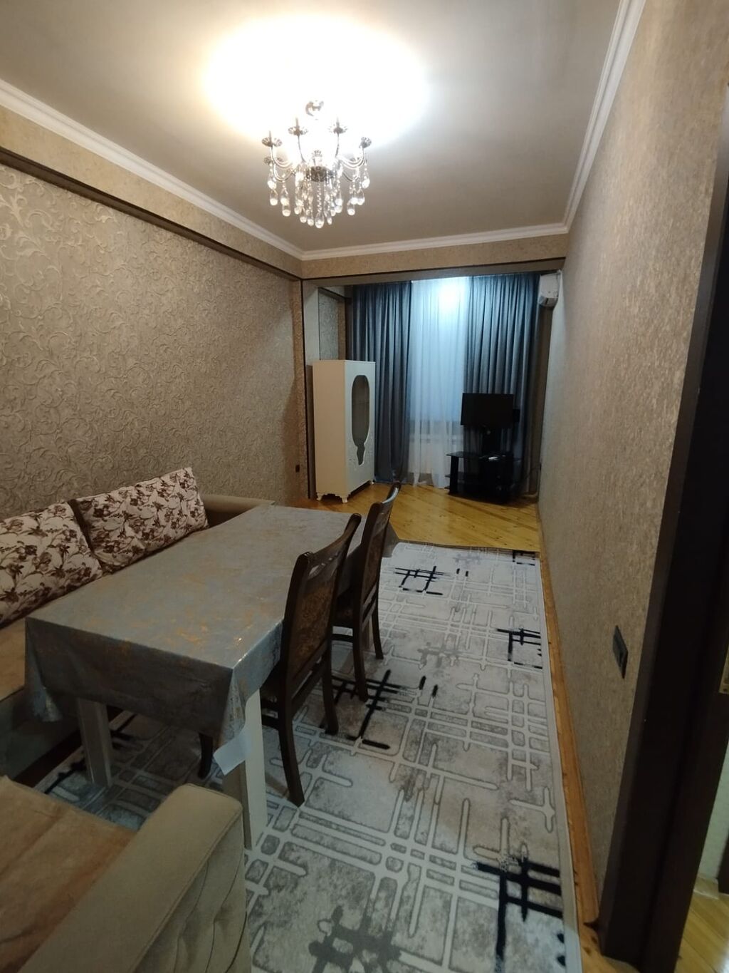 - Zövqlü təmir: mərmər naxışlı kafel döşəmə dəhlizdə, açıq rəng laminat döşəmə otaqlarda, yüksək tavan, alçıpan işıqlanma xətləri