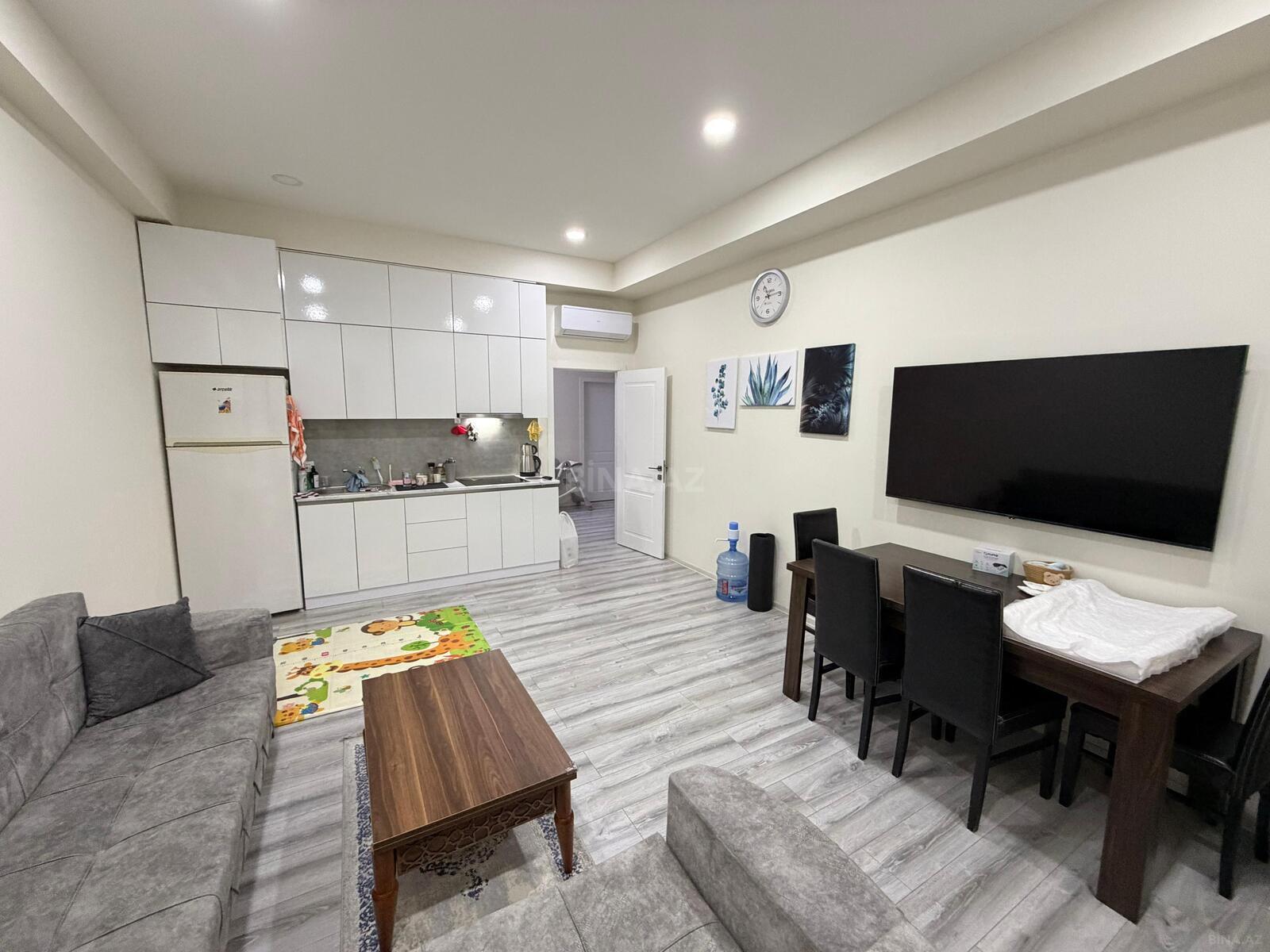 - Müasir dizaynlı mətbəx mebeli, quraşdırılmış qaz plitəsi, aspirator, iri həcmli soyuducu