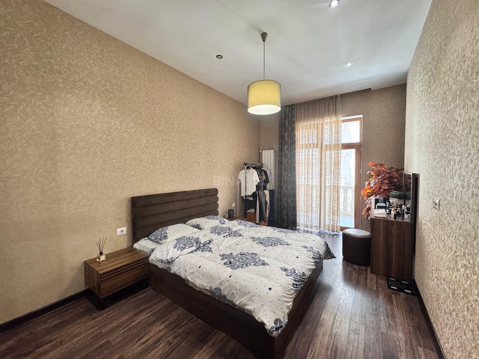Mənzil bütün mebellərlə və məişət texnikası ilə təmin olunub –yaşayış üçün hazırdır. Mənzildən şəhərə möhtəşəm mənzərə açılır, hər otaqdan eyvana çıxış var.